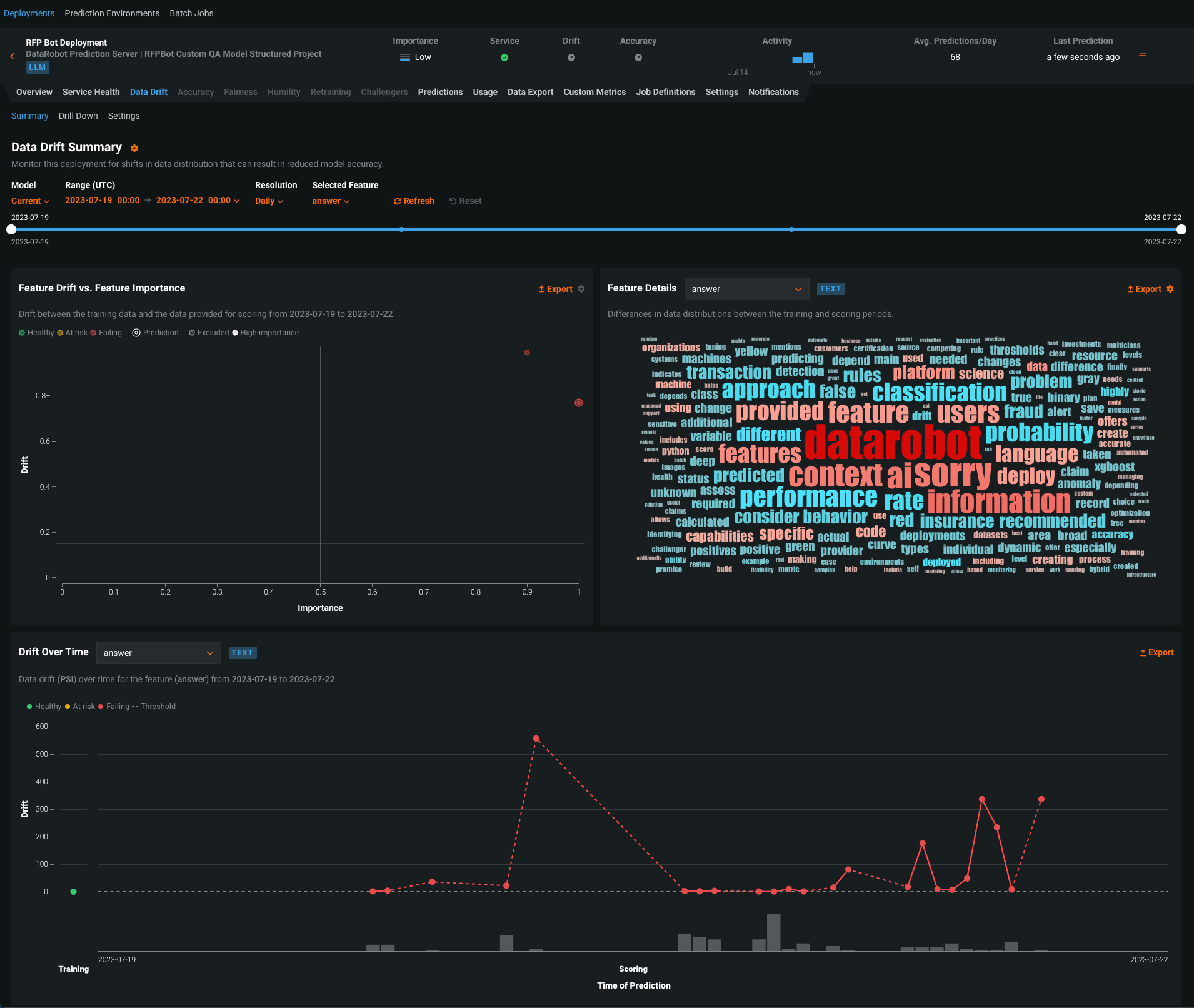 Além de criar modelos, a plataforma também realiza o monitoramento da performance dos modelos em produção (deploy) em tempo real.