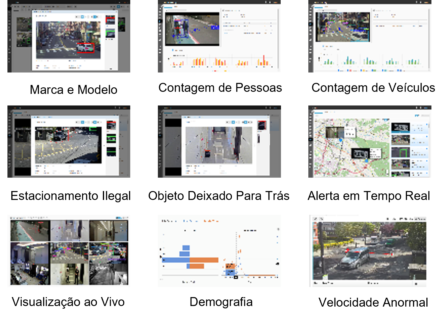 - Pesquisa forense detalhada com base em múltiplos atributos, sem depender do reconhecimento facial ou do reconhecimento de placa.